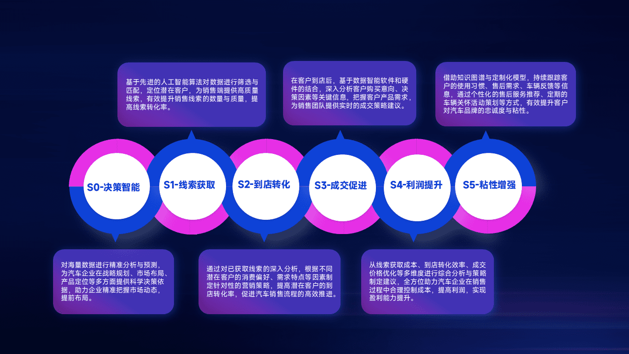 通过拓宽潜在客户来源、、、、优化线索分配并提高到店转化率,,以增强销售效率。。。同时,,,,利用线索数据不断优化分析模型,,有效提升转化率,,,,扩大营销影响力。。。。